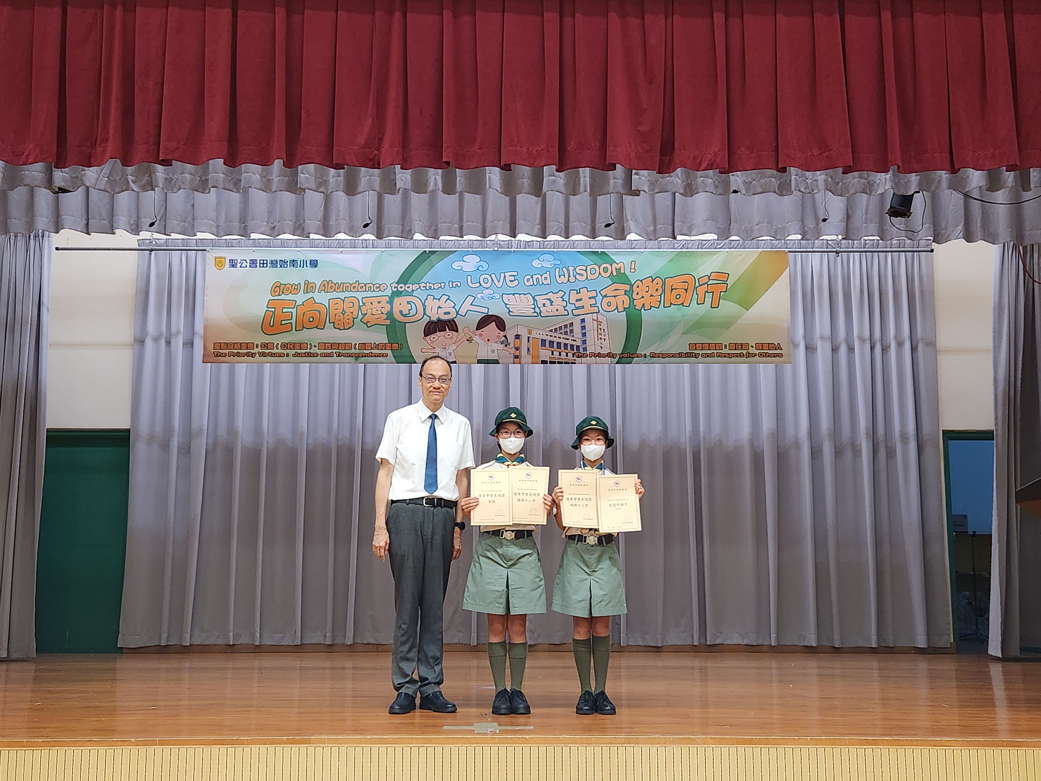 學校升旗隊成員在出色升旗手日營活動中獲得_出色升旗手_優異學習表現獎(摺旗十二步)及優異學習表現獎(步操)